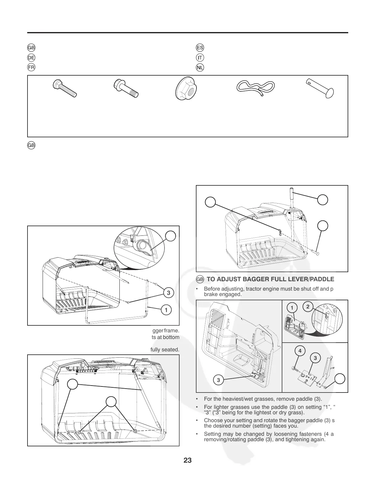 TO ADJUST BAGGER FULL LEVER/PADDLE