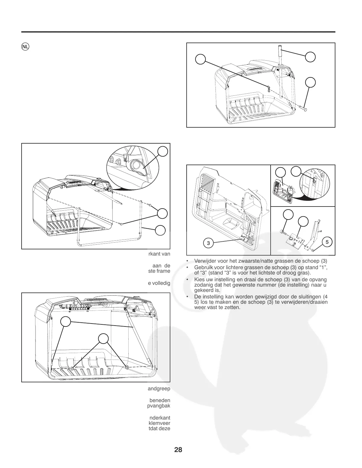 • Gebruik voor lichtere grassen de schoep (3) op stand “1”, “2”