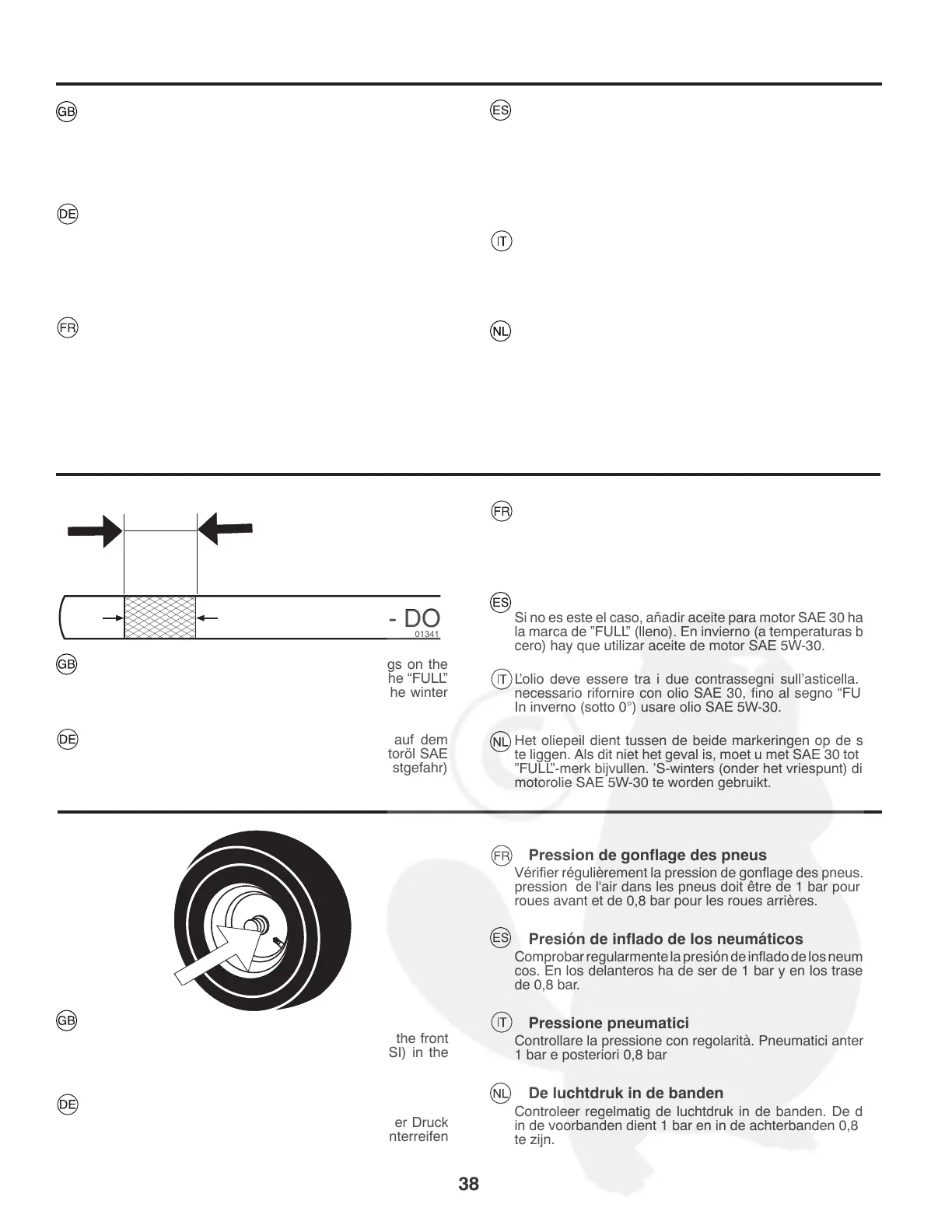 de l'huile moteur SAE 30 jusqu'au repère "maxi" (FULL), jamais