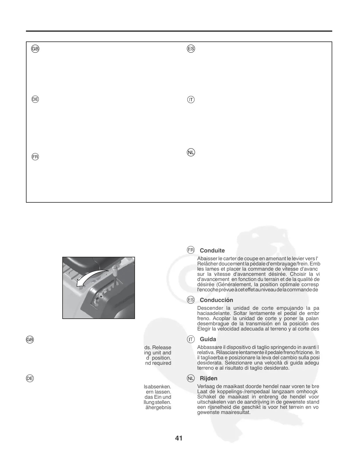 l’operatore lascia il sedile con il motore acceso e il tagliaerba