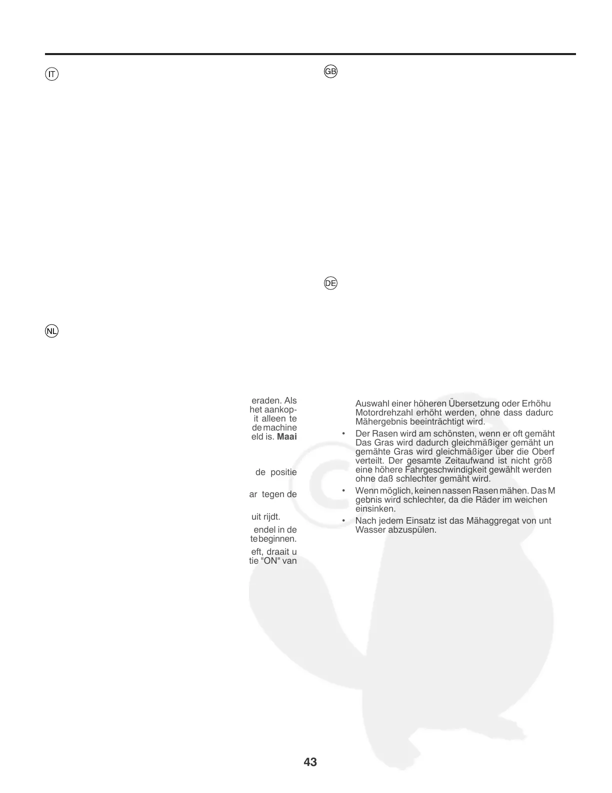 • Wenn möglich, keinen nassen Rasen mähen. Das Mäher-