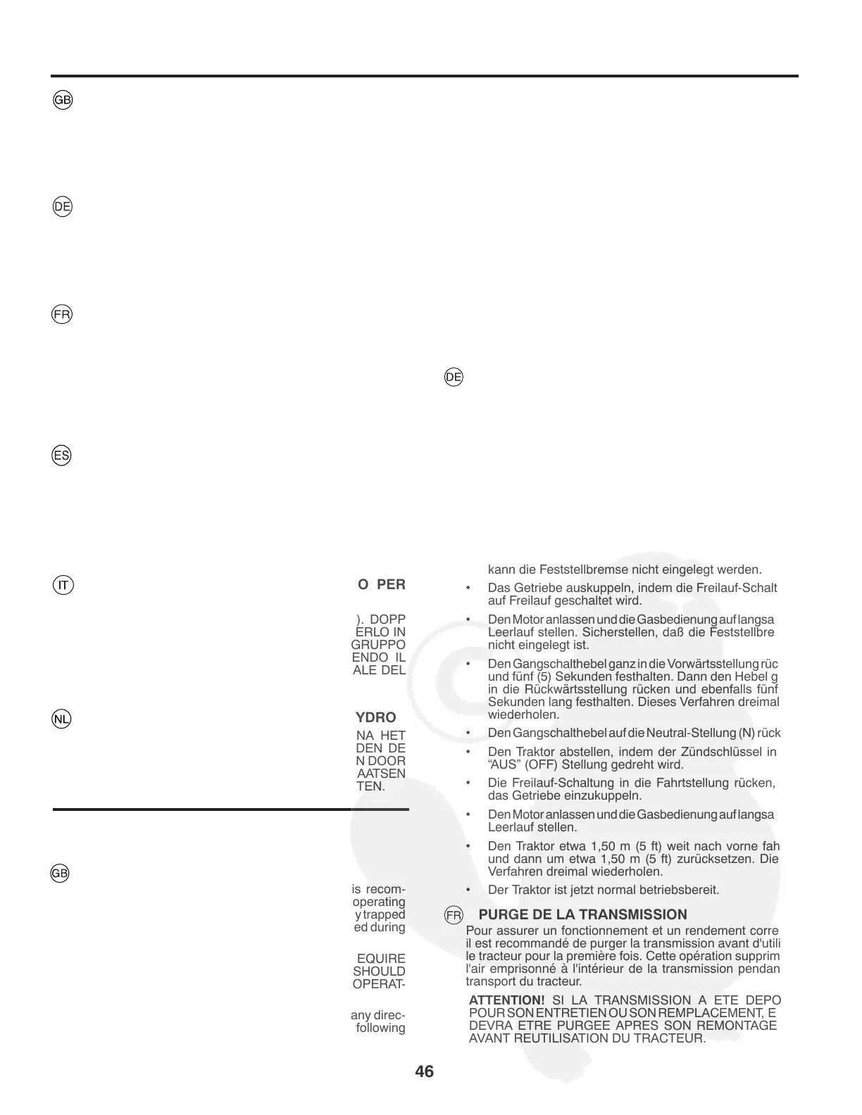 PURGE DE LA TRANSMISSION