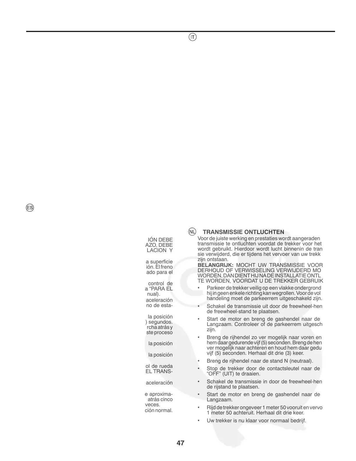 trattore, si raccomanda di spurgare la trasmissione prima di