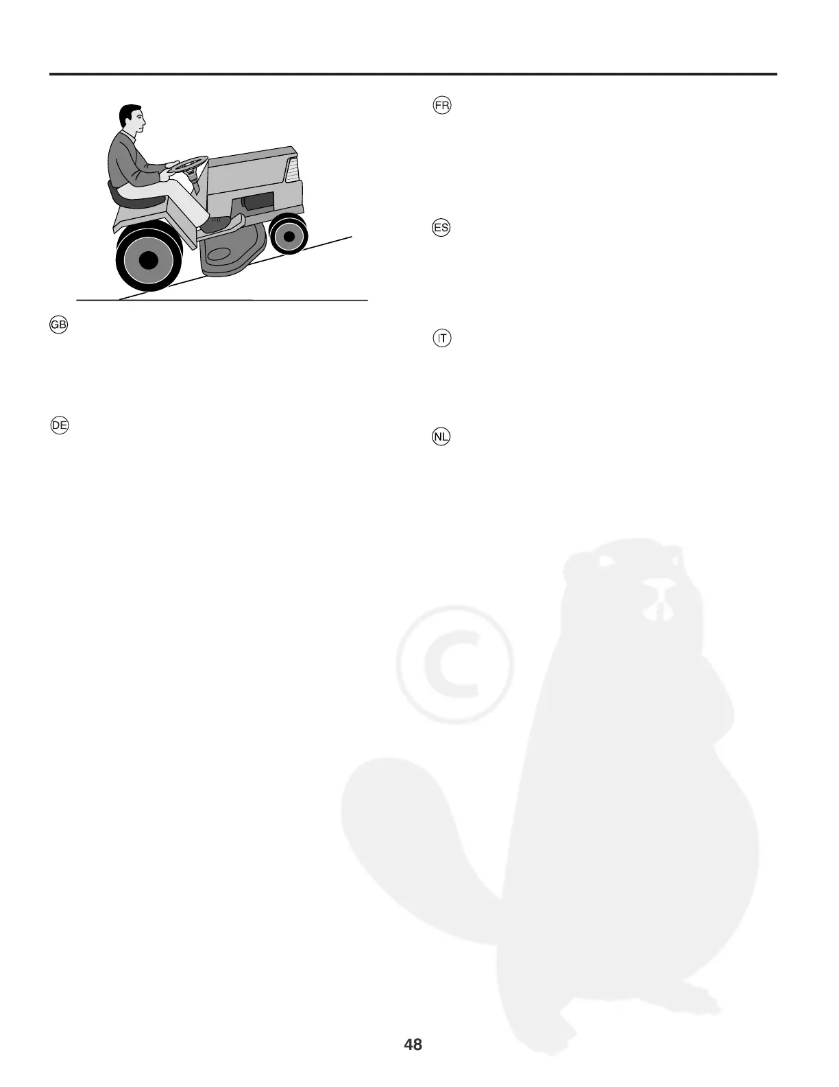• Ne jamais utiliser un tracteur sur des pentes excédant 15°.