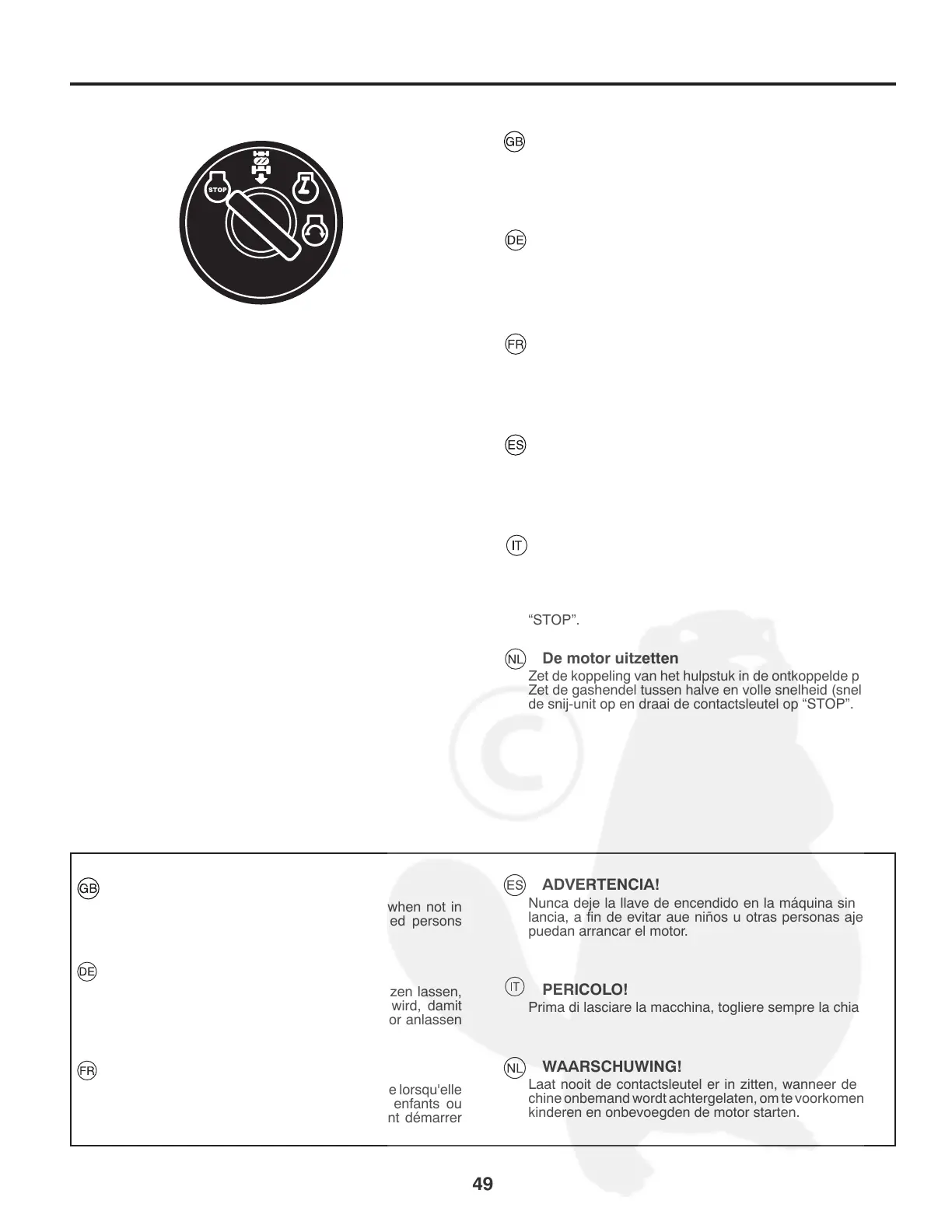 kinderen en onbevoegden de motor starten.