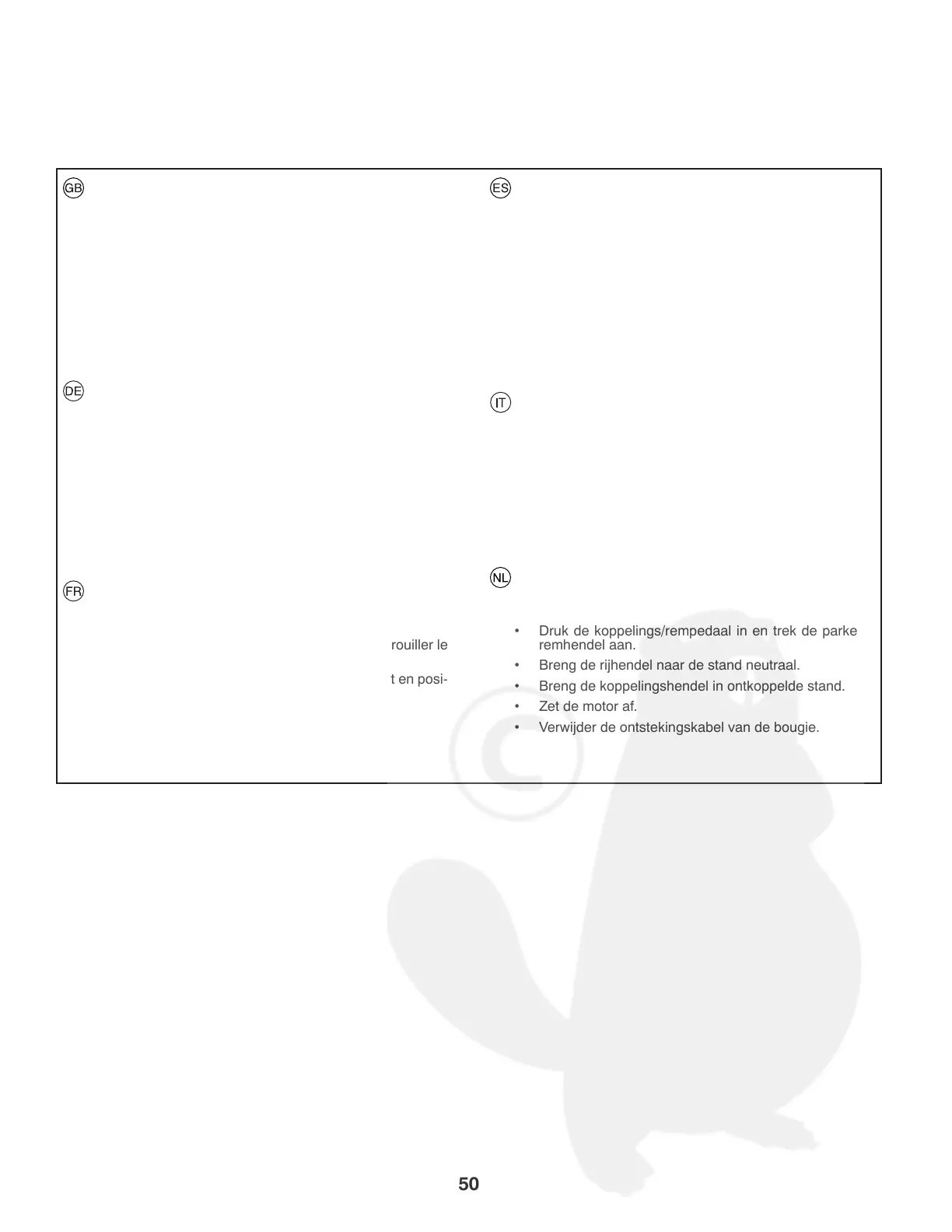 Voordat service-werkzaamheden aan de motor of maaikast