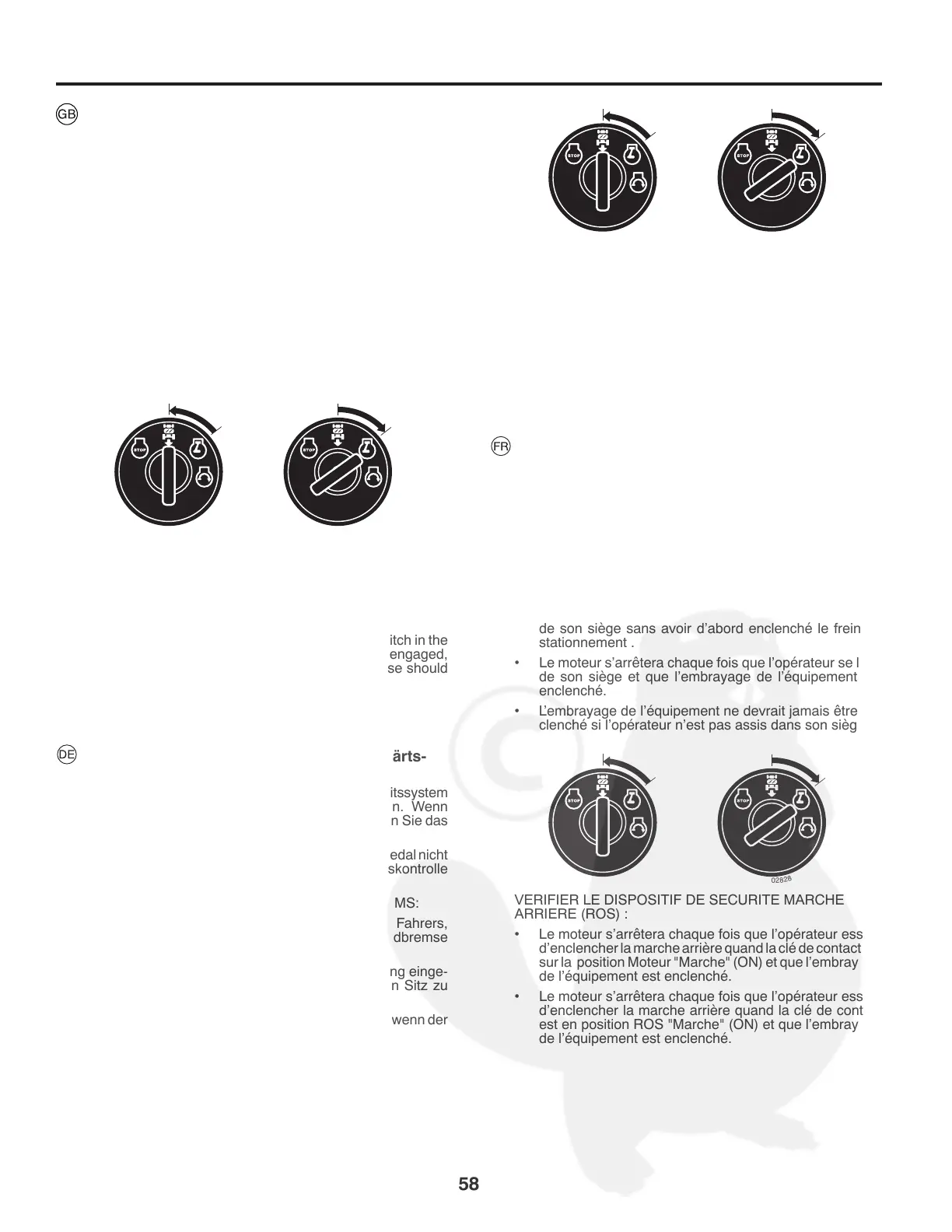 • Le moteur s’arrêtera chaque fois que l’opérateur se lève