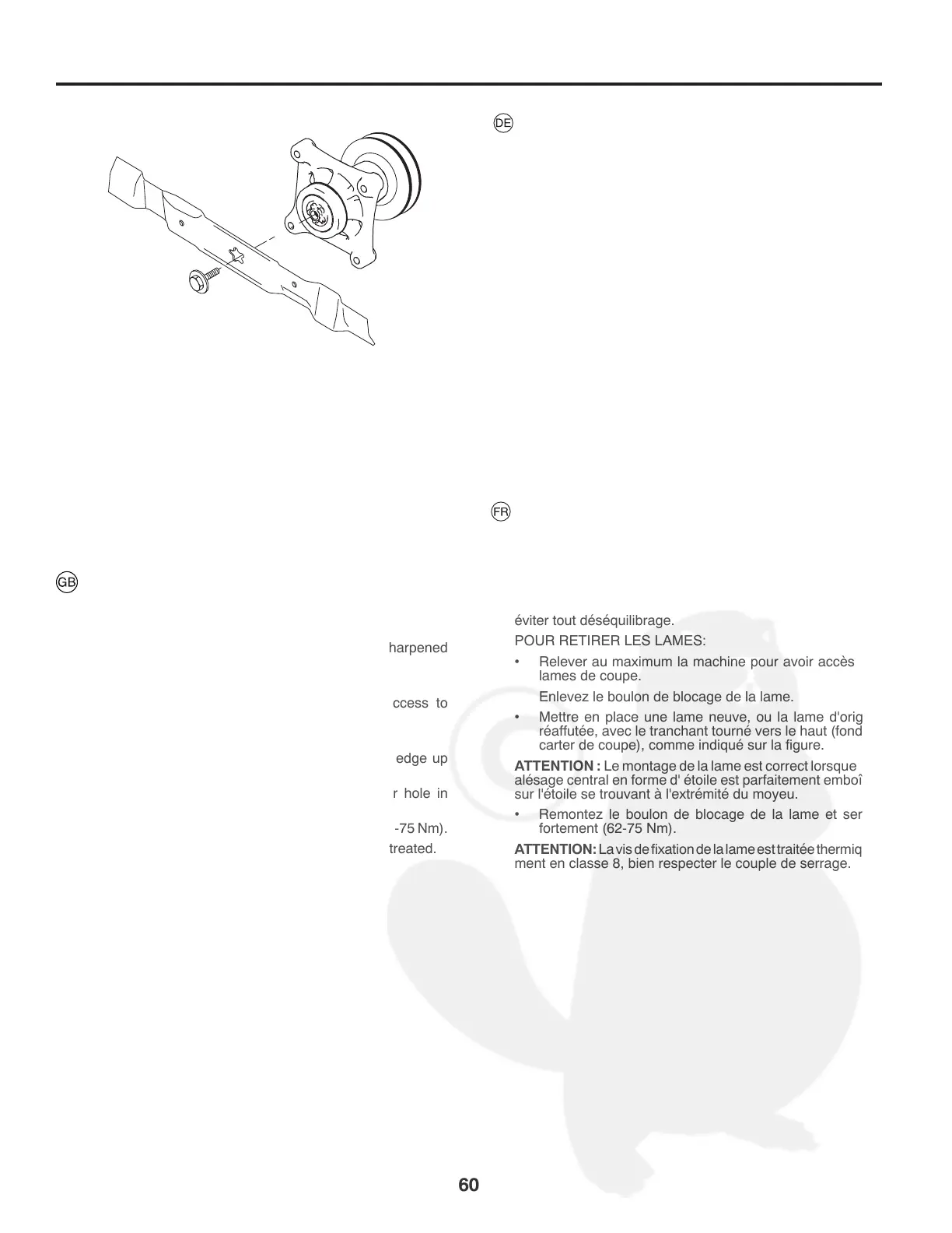 ATTENTION: La vis de fixation de la lame est traitée thermique-