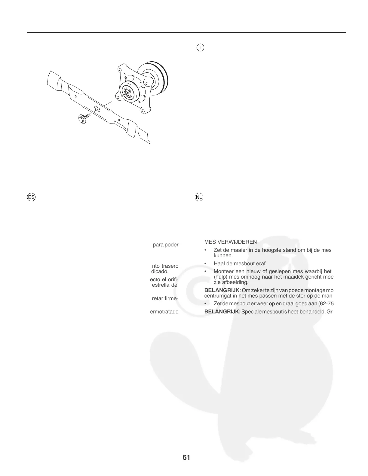 IMPORTANTE: El perno especial de la cuchilla es termotratado