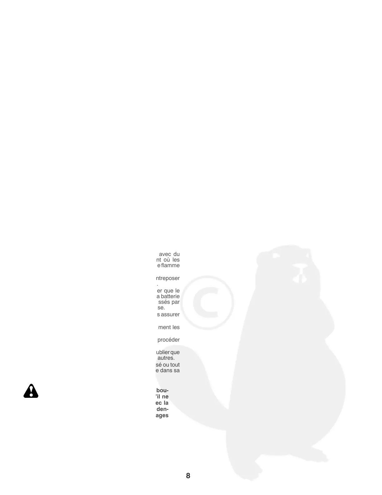 • Ne jamais entreposer le tracteur de pelouse avec du