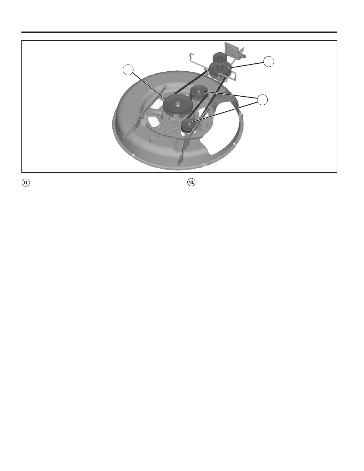guato attraverso tutte le scanalature della puleggia del rasaerba.