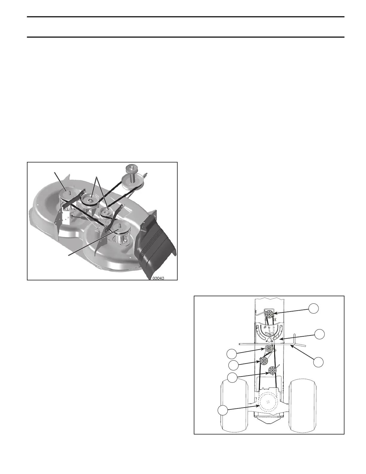 • Install new belt from tractor rear to front, over the steer-