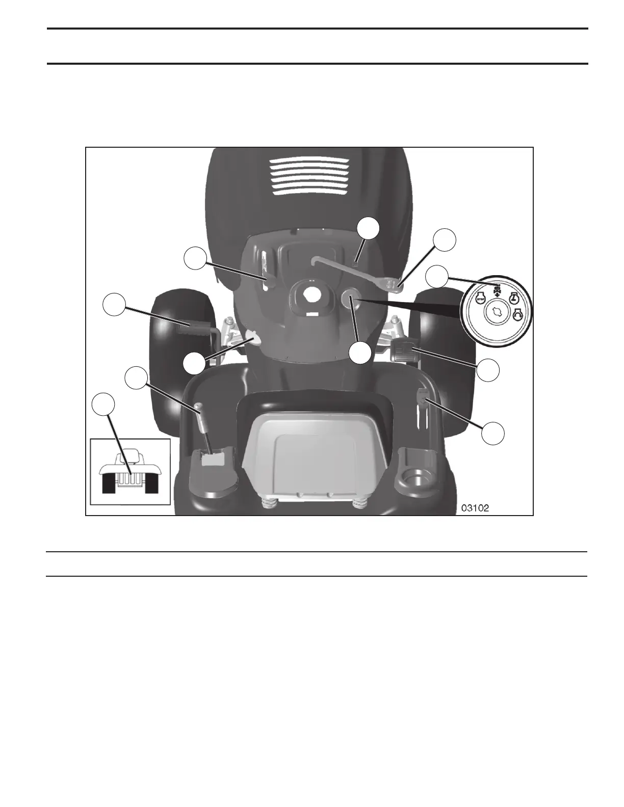 Compare the illustrations with your tractor to familiarize yourself with the locations of various controls and ad just ments.