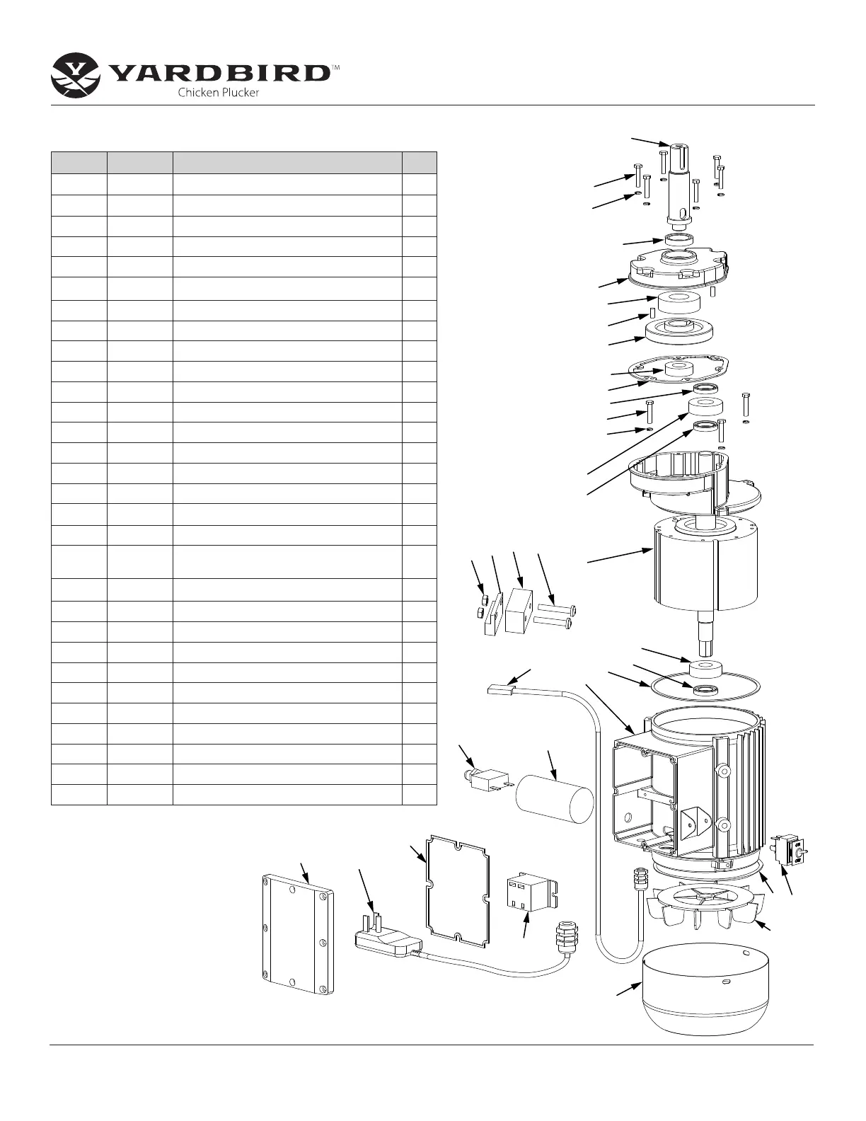 Voir les pièces détachées en ligne à www.yardbirdpluckers.com ou composer le 800-345-6007 L-V 8h-17h