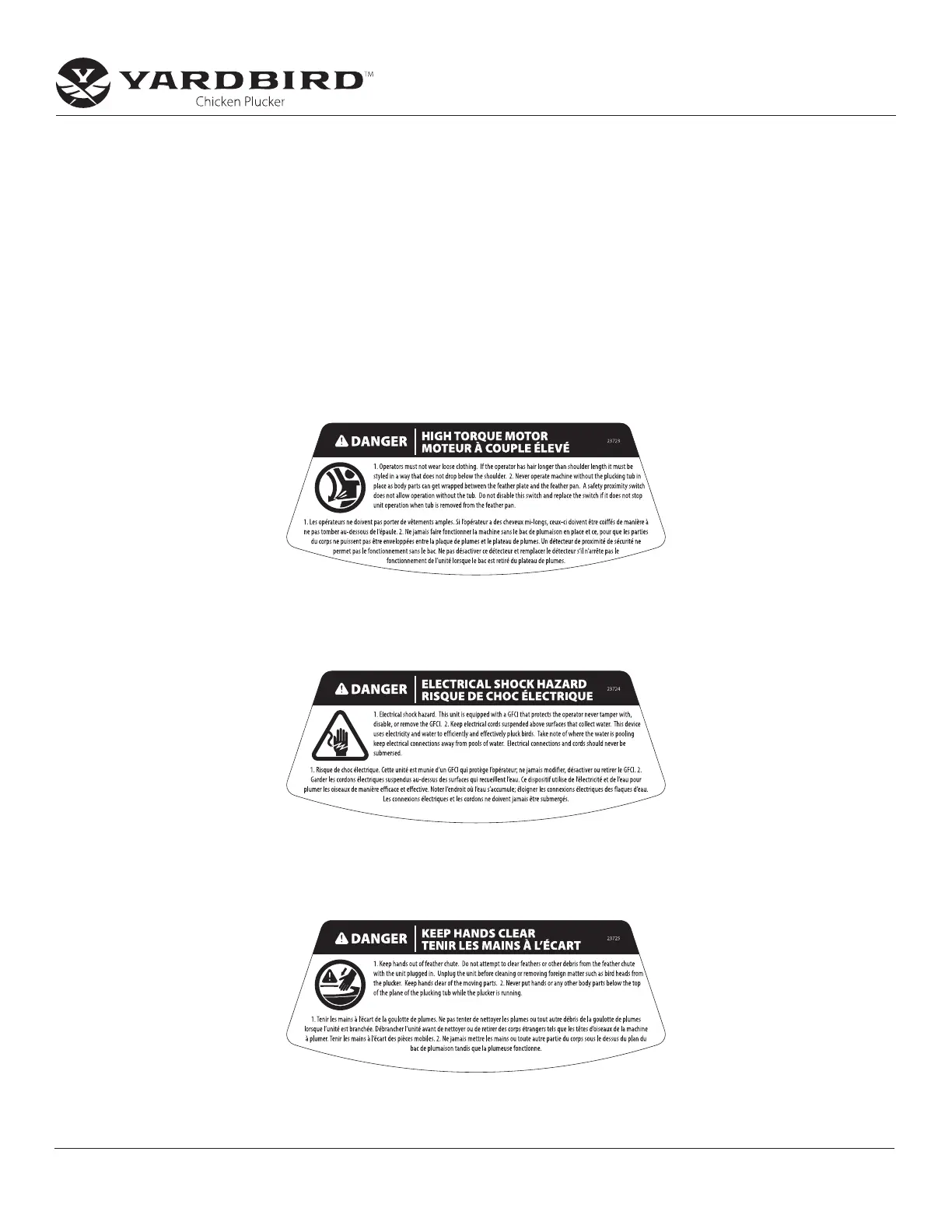 Consulte sobre la disponibilidad de piezas en línea en www.yardbirdpluckers.com o llame al 800-345-6007 de lunes a viernes de 8:00 a. m. a 5:00 p. m.