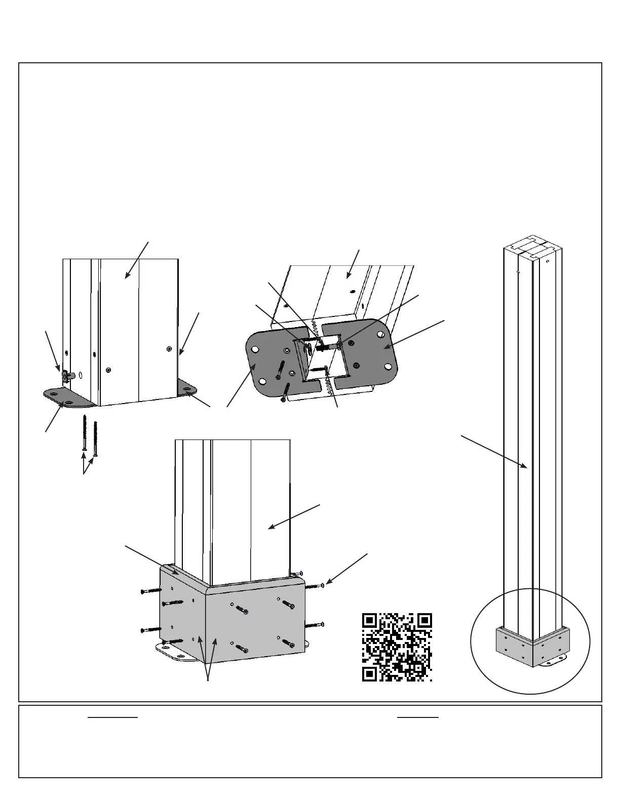 C: Place one (422) Plinth ush to the bottom and tight to the Post Mounts on each side of the (423) 6 x 6 Post