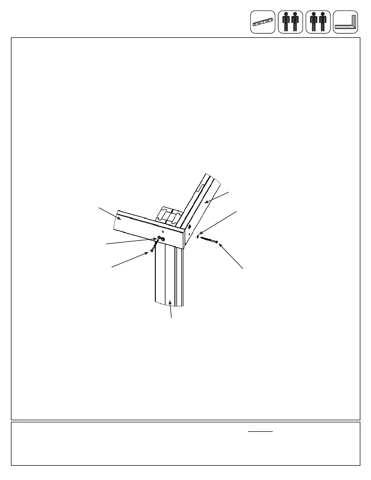 E: Make sure each corner is square and level then attach Beam Assemblies to Post Assemblies with two 5/16