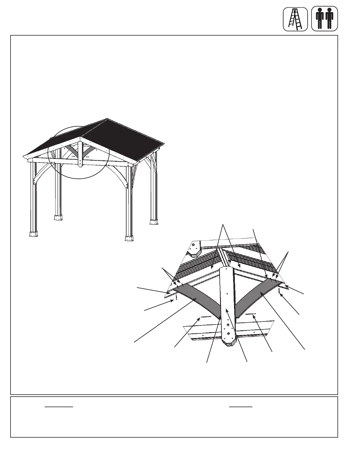 B: Attach each (414) Gable Gusset to (471) Gable End with two #8 x 1-3/4” Wood Screws per gusset and to