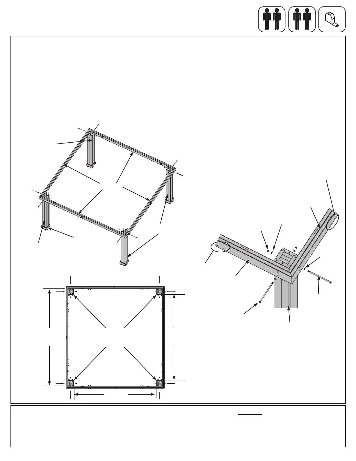 C: Continue until all four Beam Assemblies are attached and the corners are tight together. (g. 4.1 and 4.2) See
