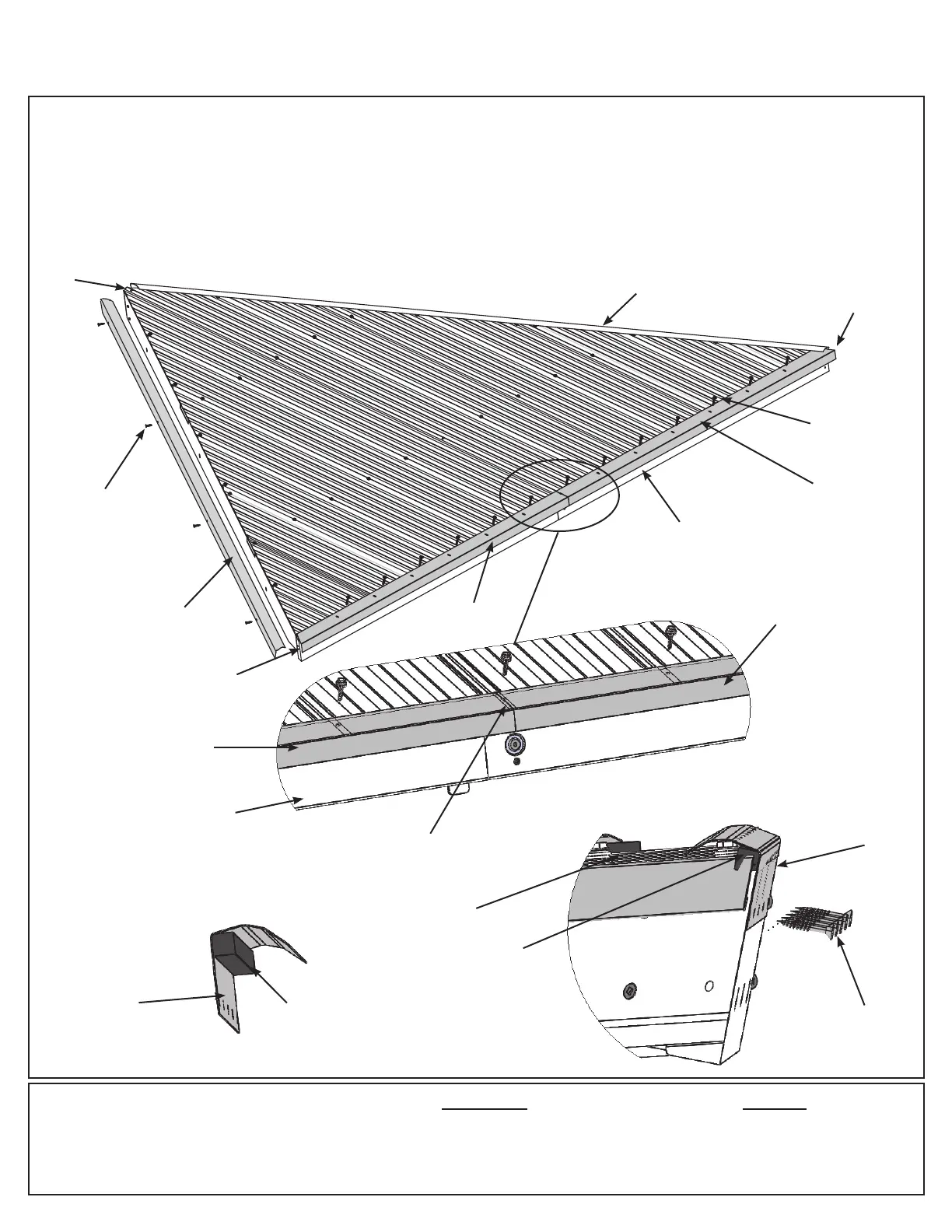 Roof Rafter Assembly so they cover the panels and attach with four #7 x 3/4” Wood Screws per Ridge Clip. (g.