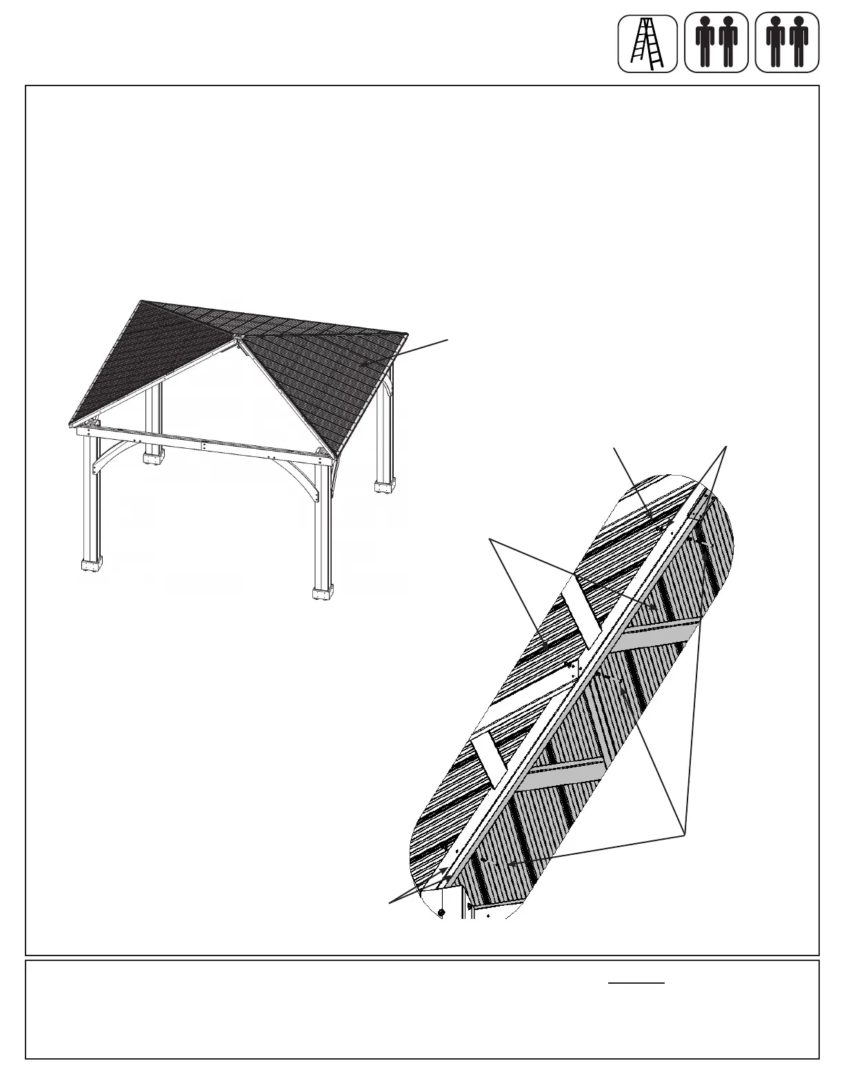 E: Lift third Roof Panel Assembly with Rafter Beam Brackets over Beam Assembly taking care not to drag the