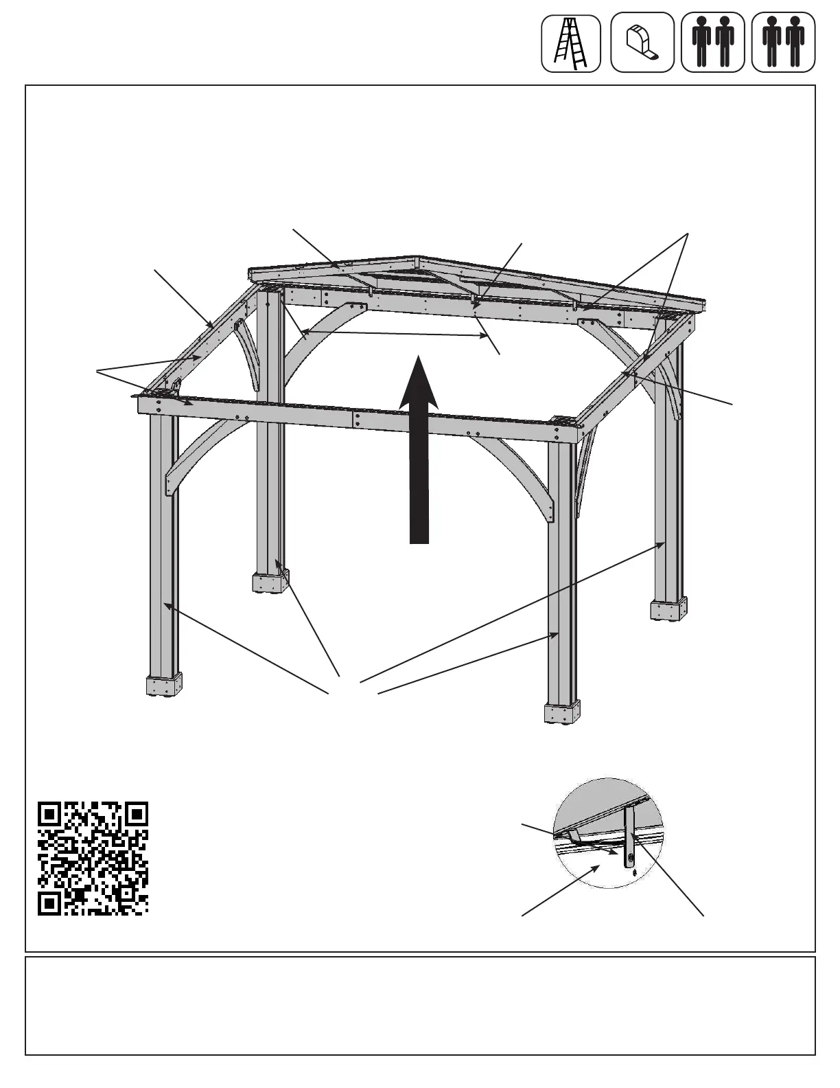 B: With all four assemblers place one Roof Panel Assembly with Roof to Beam Brackets just in front of the Post