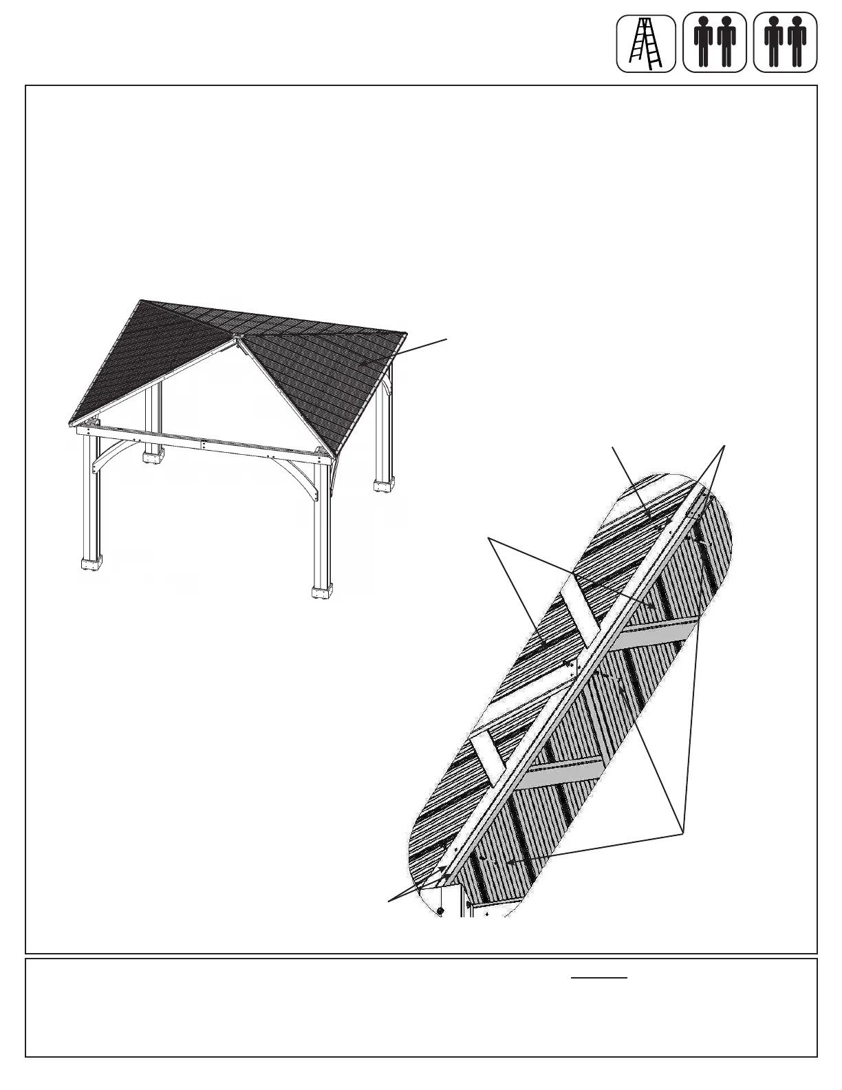 E: Lift third Roof Panel Assembly with Roof to Beam Brackets over Beam Assembly taking care not to drag the