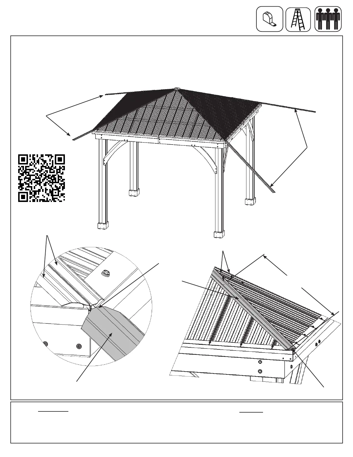 B: Tighten Loop to secure Roof Peak Set.