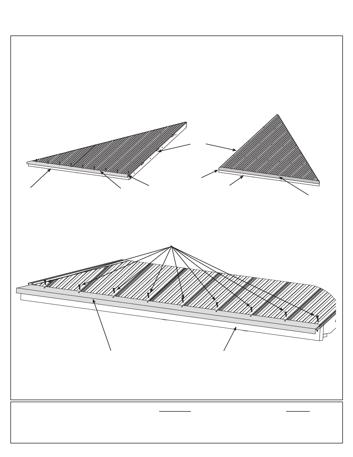 Edge Right line up with the holes in the panels then attach Roof Edges with nine #8 x 1” Roong Screws per