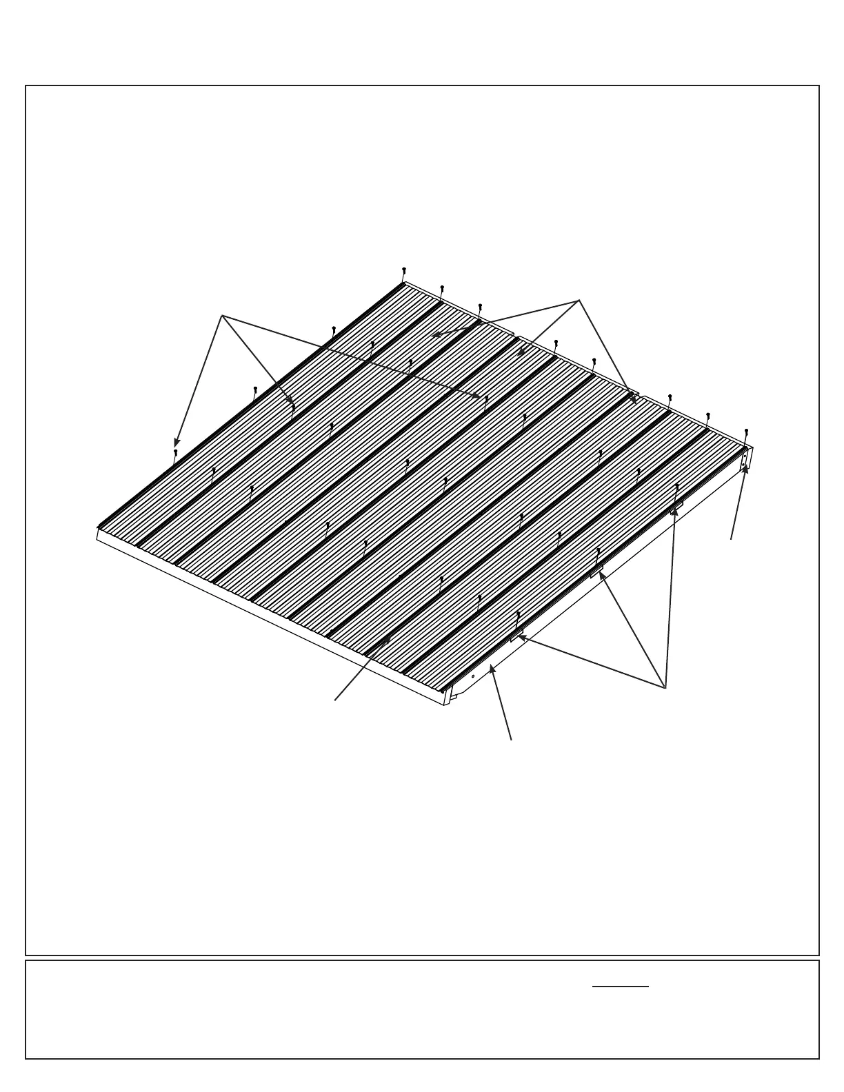 32 #8 x 1” Roong Screws as shown in F20.5. Do not install screws along the bottom row.