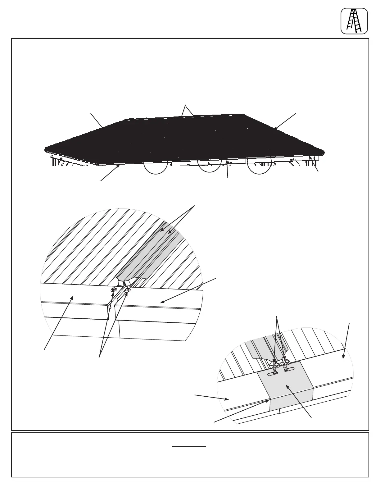 C: Remove the #8 x 1” Roong Screws from each Roof Edge Left, Roof Edge Middle and Roof Edge Right