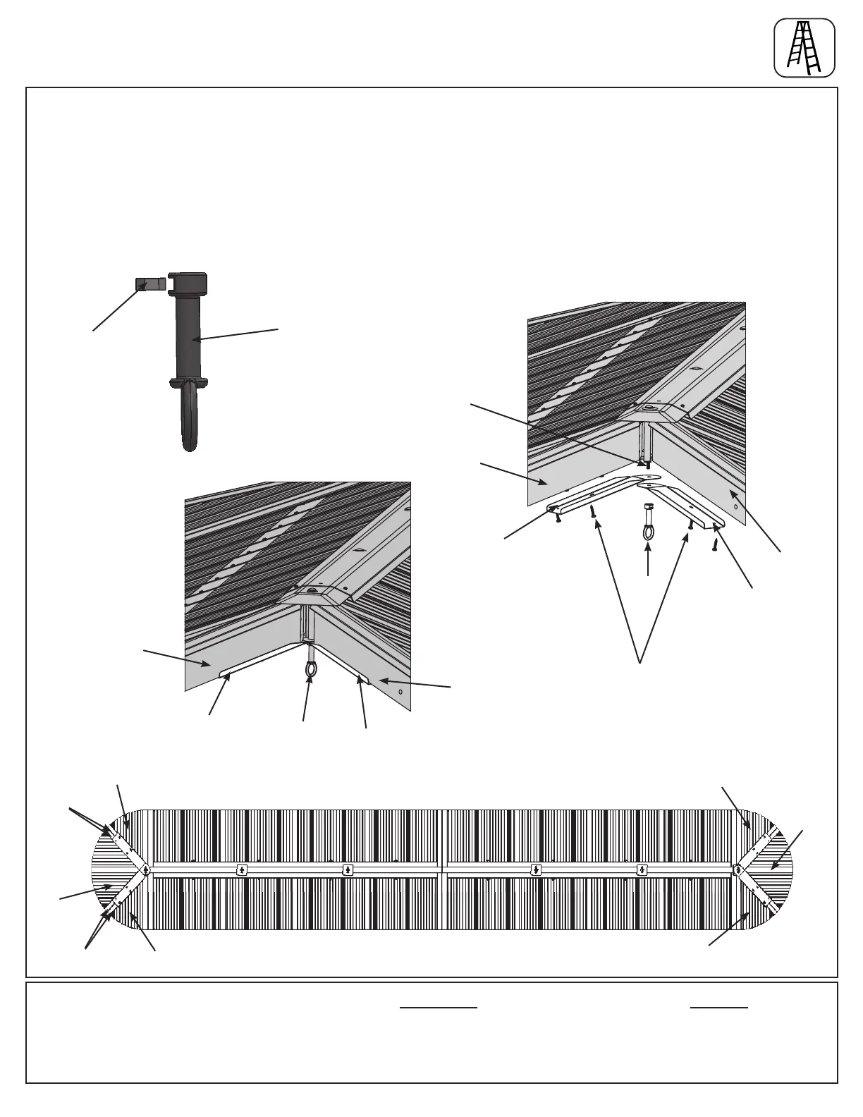 B: Insert two Roof Peak Brackets through each end Carriage Bolt, so they t over the Rafter Corners, and attach