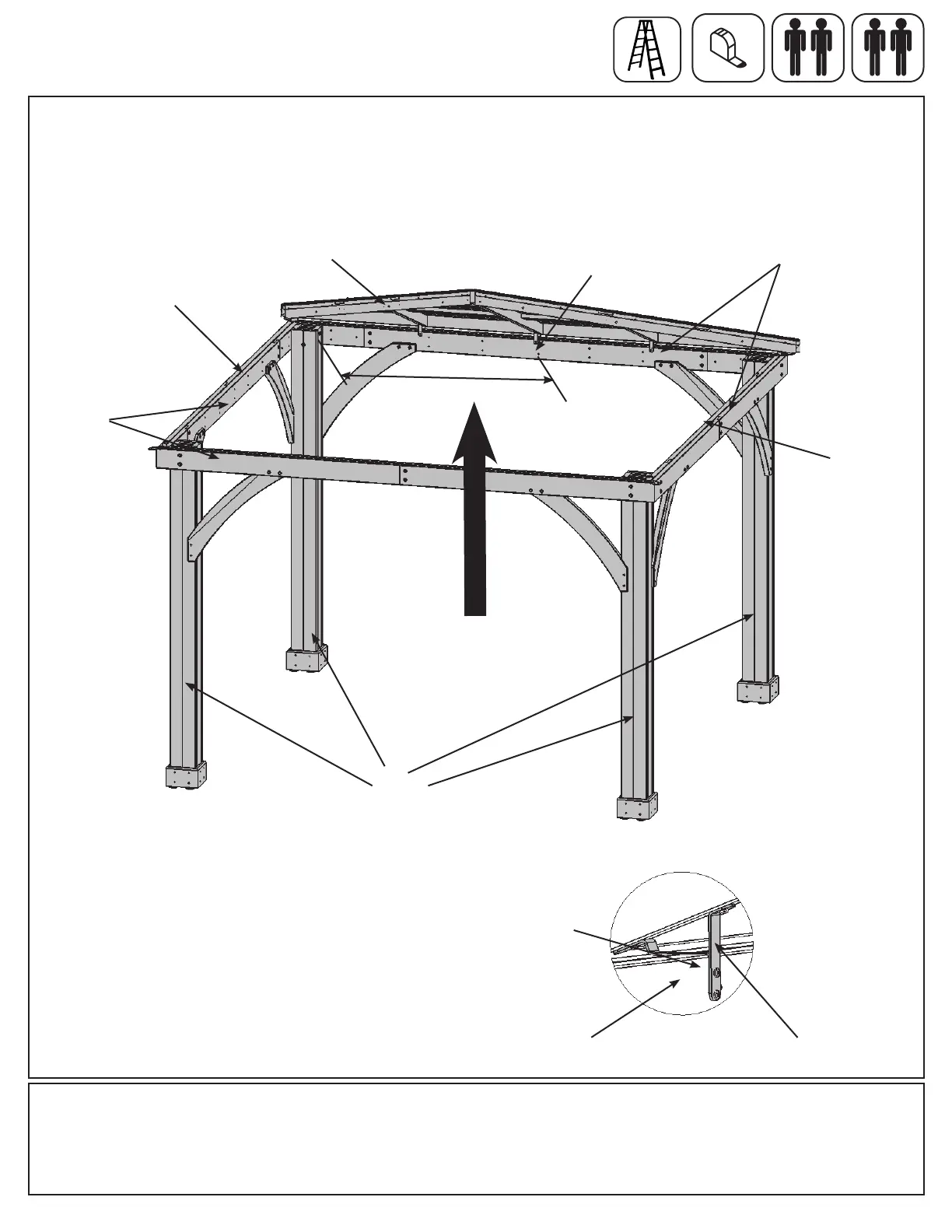 B: With all four assemblers place one Roof Panel Assembly with Roof to Beam Brackets just in front of the Post