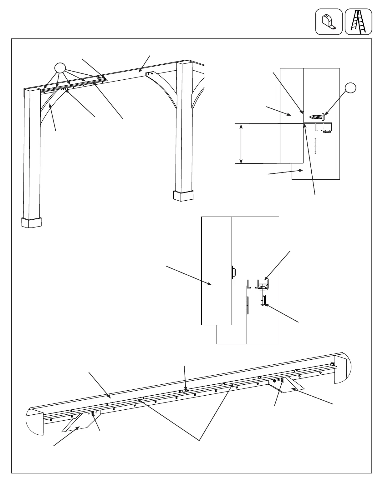 side of Posts (measure 2" up from bottom of beam), make sure the track rests tight to the Gusset and Beam. Attach with Pan Screws.