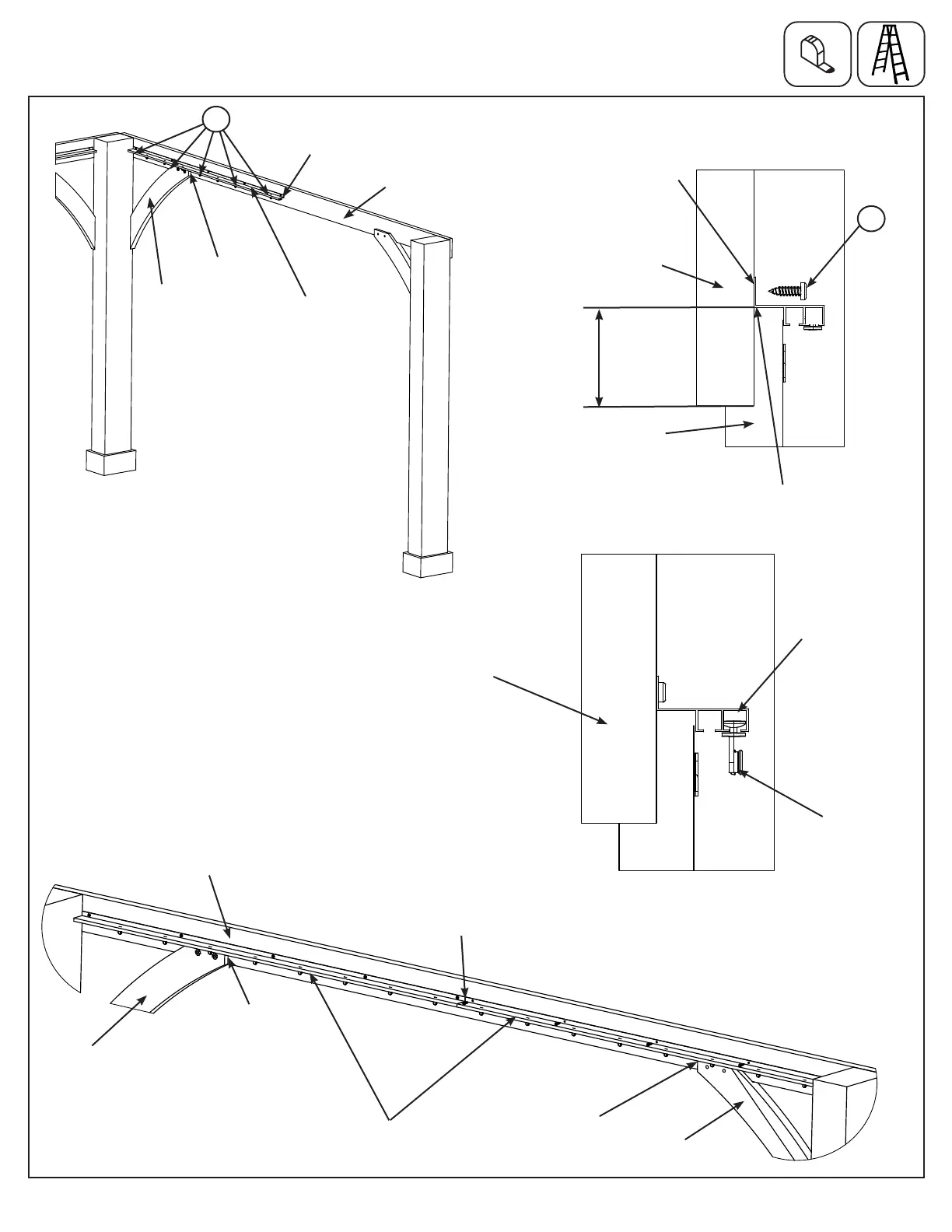 Gusset and Beam. Attach with Pan Screws. Add all 18 curtain track hangers to the