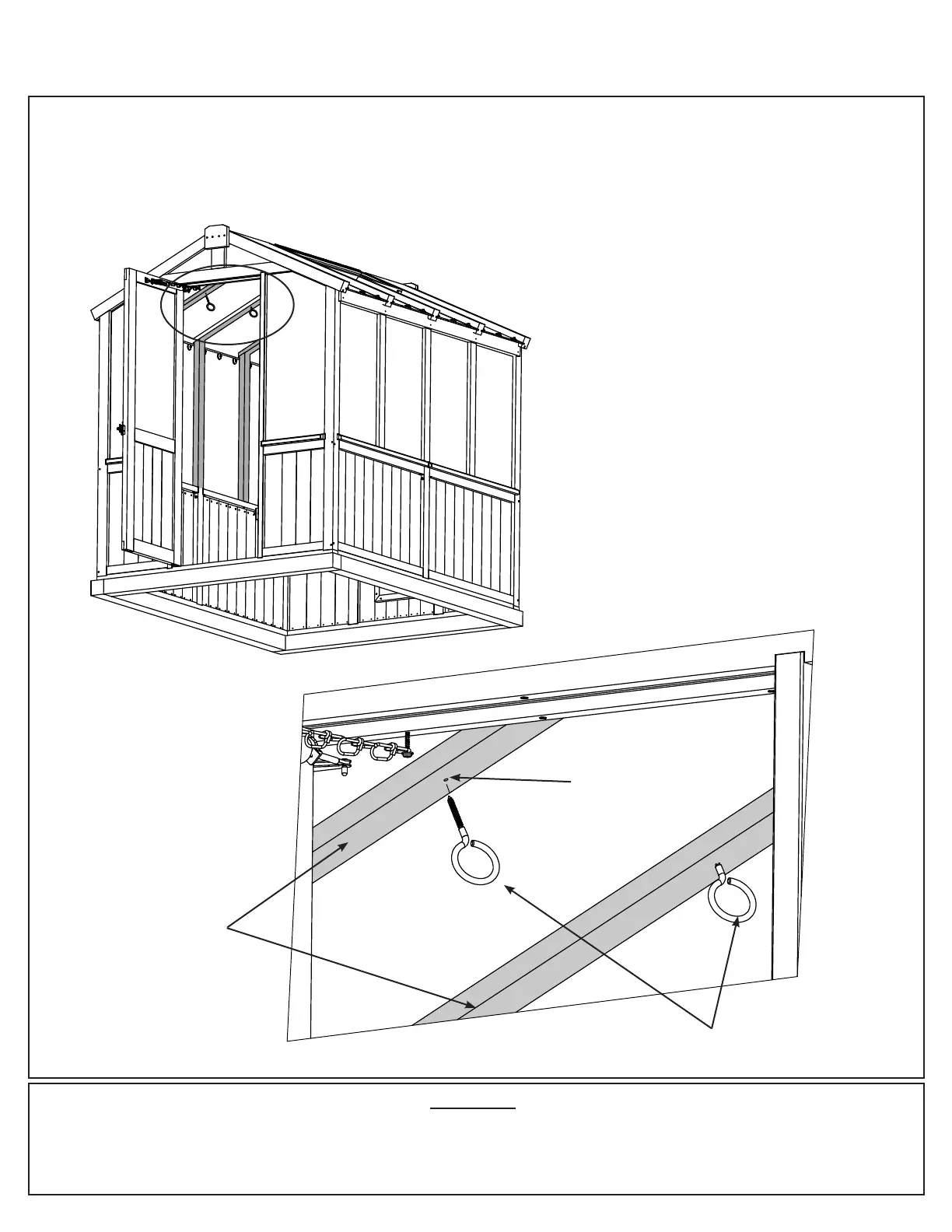 A: Attach one 3/8” Eye Lag to the pilot hole in each (1114) Middle Roof Rafter on both roof assemblies. (F26.1