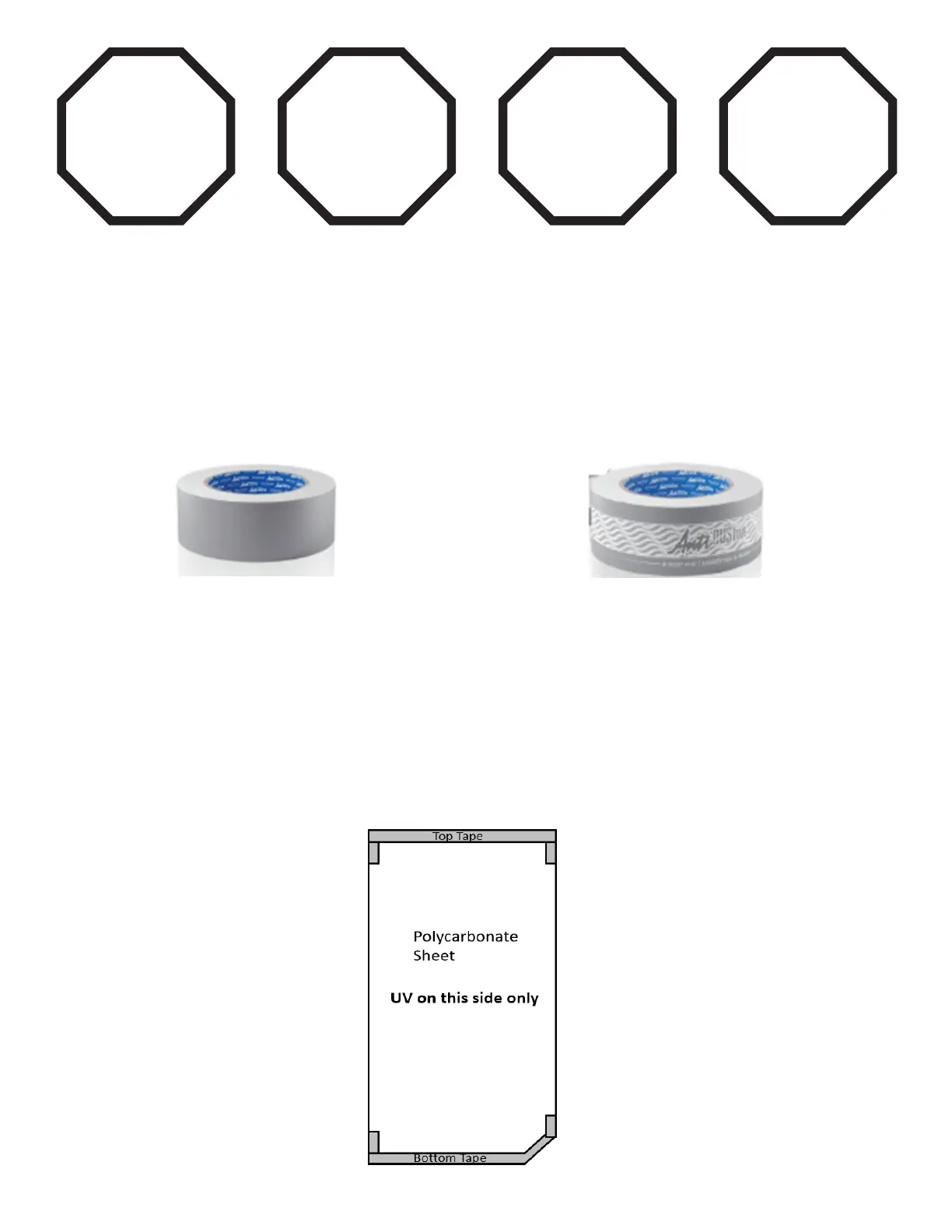 • Remove the backing on the tape, center it on the polycarbonate panel so it is