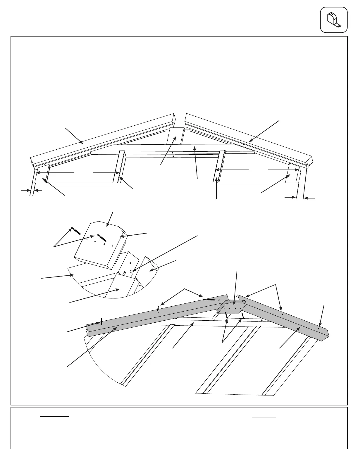 O: Attach each rafter to Peak Spacer with one #10 x 4” Wood Screw per rafter. Attach (1184) Peak Spacer to