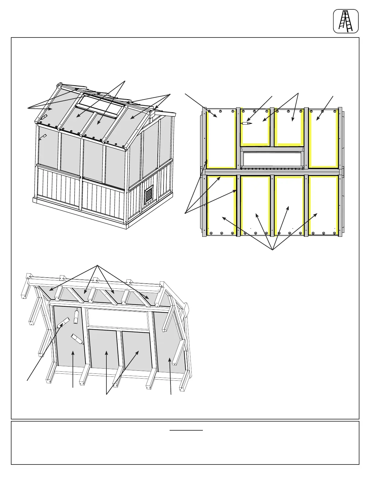 A: On both the inside and outside of the assembly apply silicone sealant on three sides of each Roof Panel