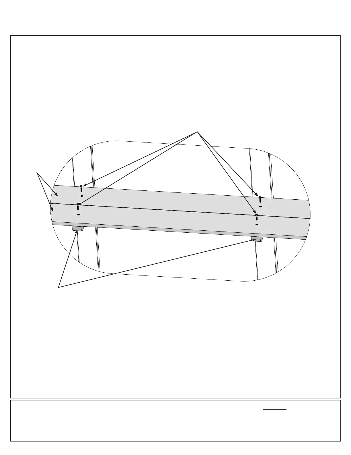 D: Over the two middle (1138) Wooden Gussets locate center of each (1139) Short Upper Shelf then attach