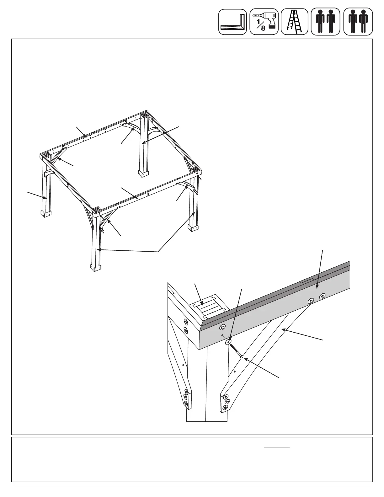 E: Make sure the assembly is still square then in the bottom holes of the Long Beam Assemblies attach to Post