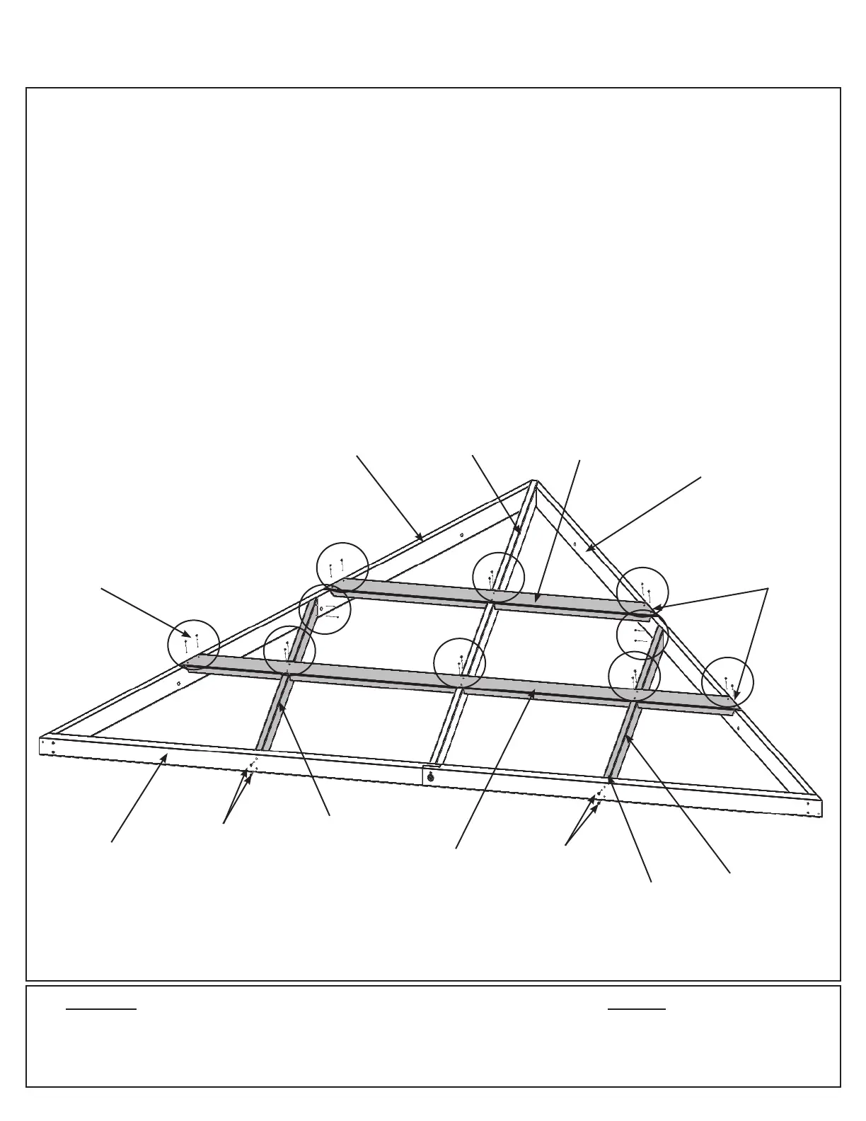 E: Place one (1085) Long Strap in the notches of (1080) LT Corner Rafter, (1081) RT Corner Rafter and (1088)