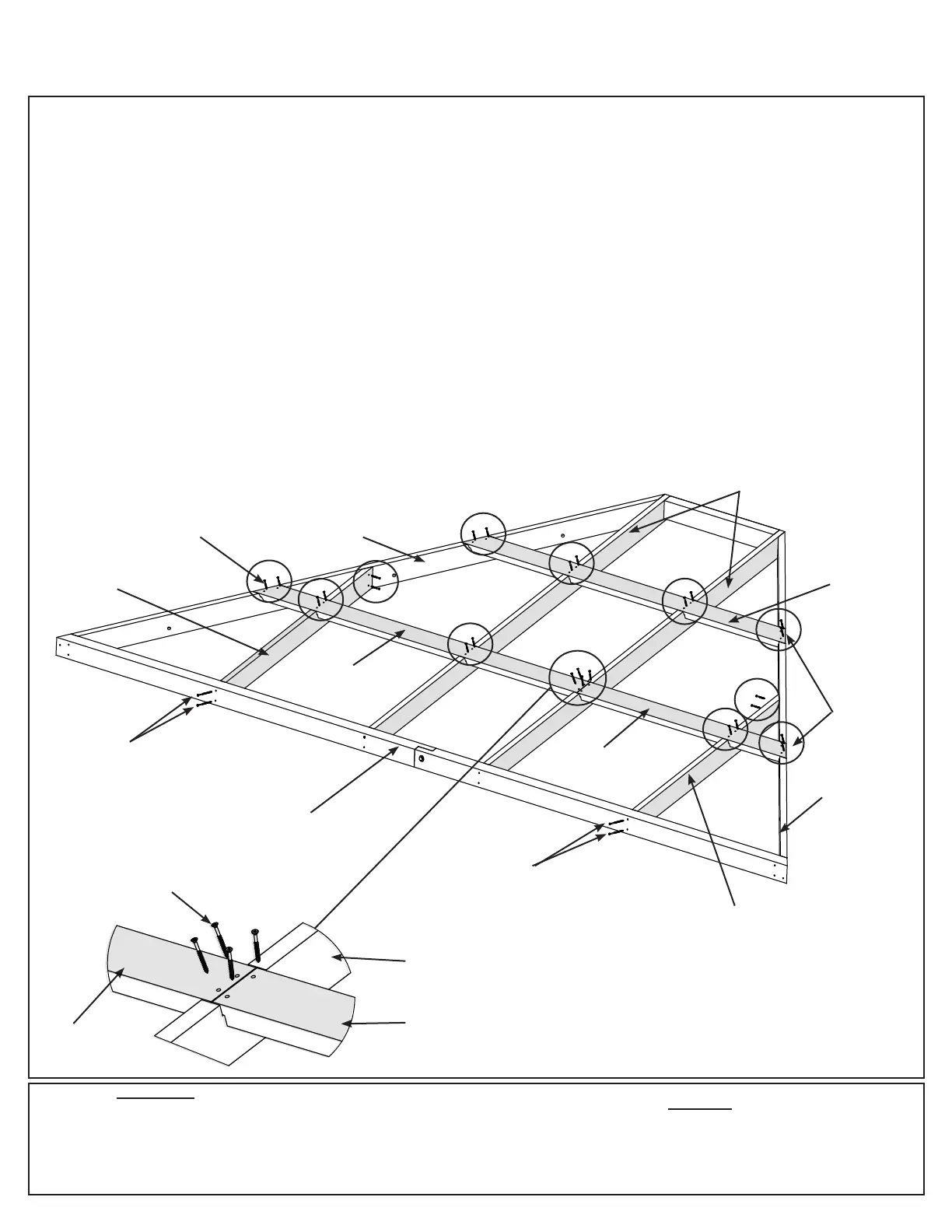 Rafters so the ends do not overhang the outside edges of the outside boards then attach with eight #8 x 1-1/2”