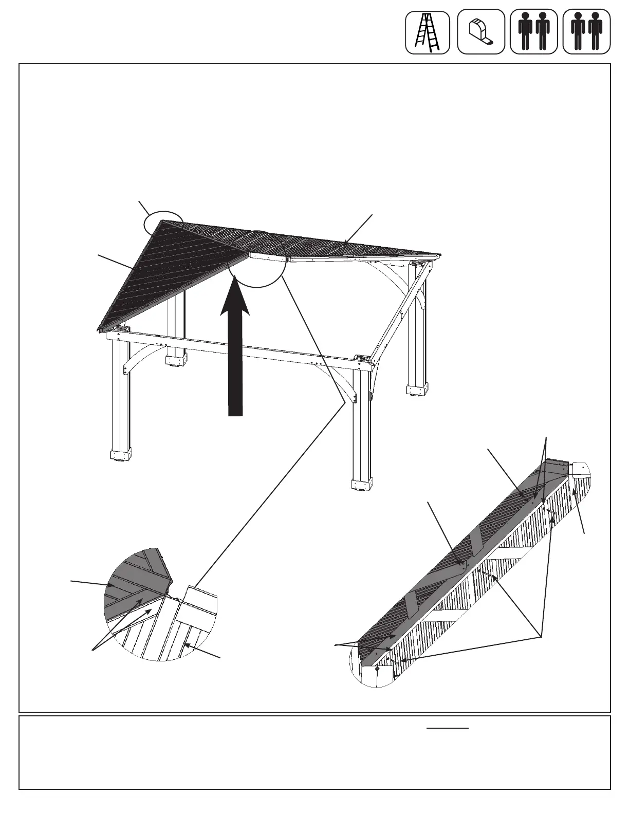 the panel on the beams. Make sure the Rafter Corners are ush with each other. One person must remain on