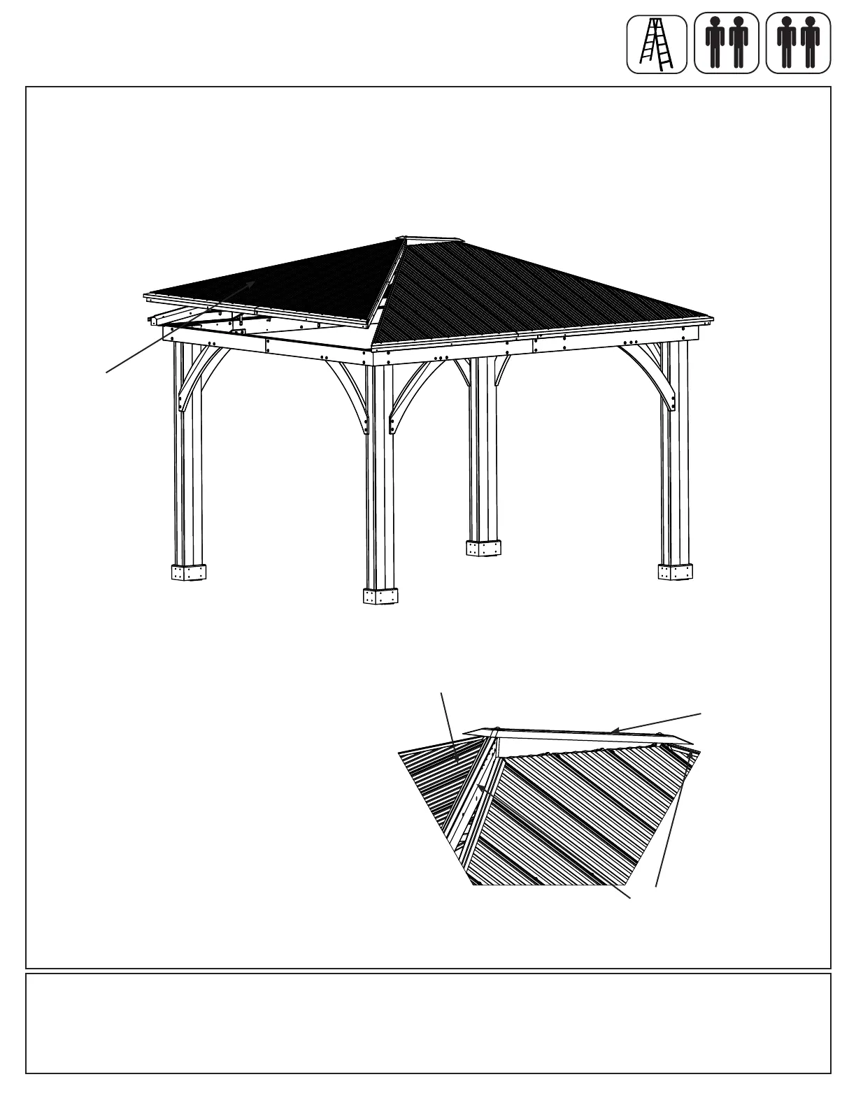 A: Lift last Small Roof Panel Assembly (without Rafter Beam Brackets) over Short Beam Assembly taking care