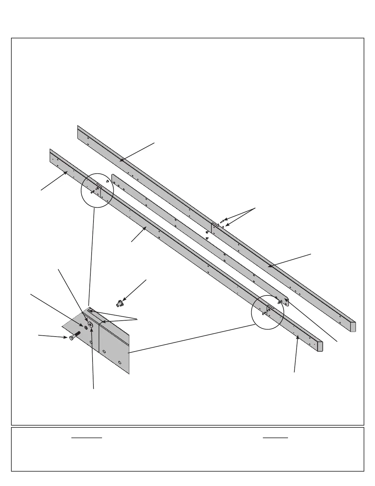 A: Connect one (447) Beam Long Left and one (448) Beam Long Right using two 5/16 x 1-1/2” Hex Bolts (with