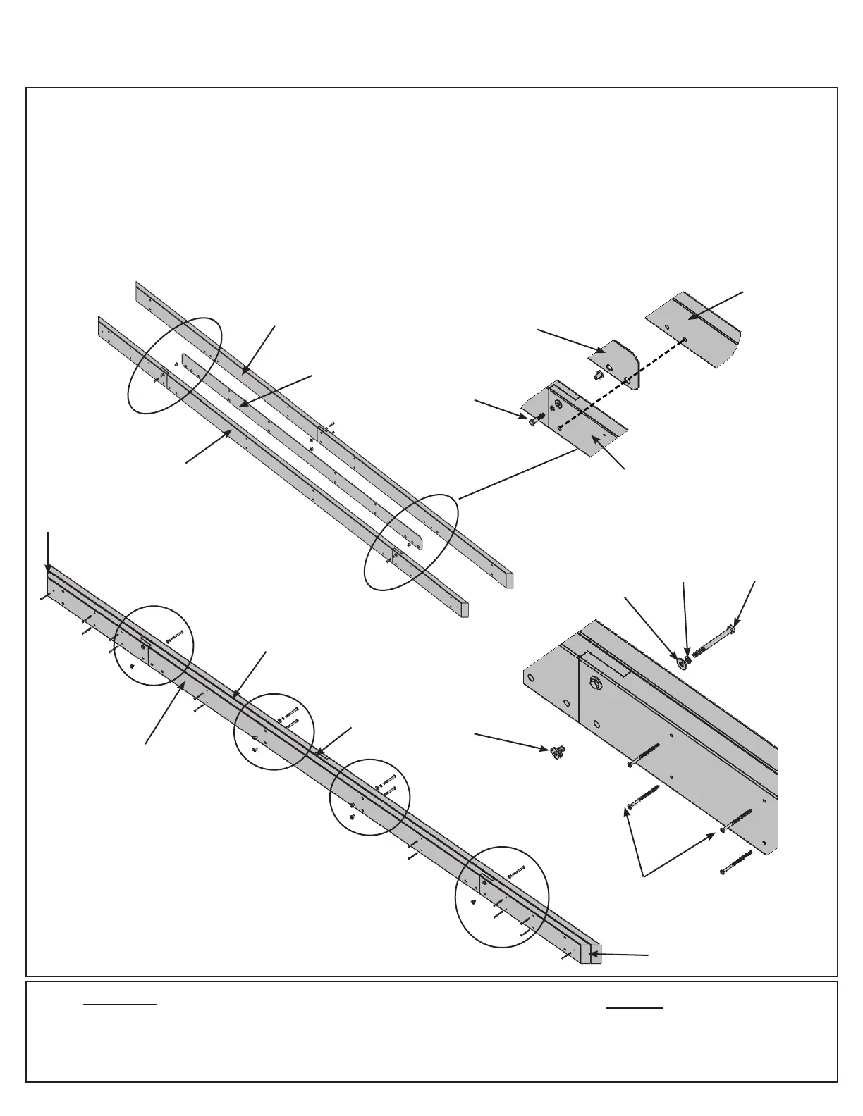 E: Attach beam assemblies and Long Beam Insert together with six 5/16 x 3” Hex Bolts (with 5/16” lock washer,