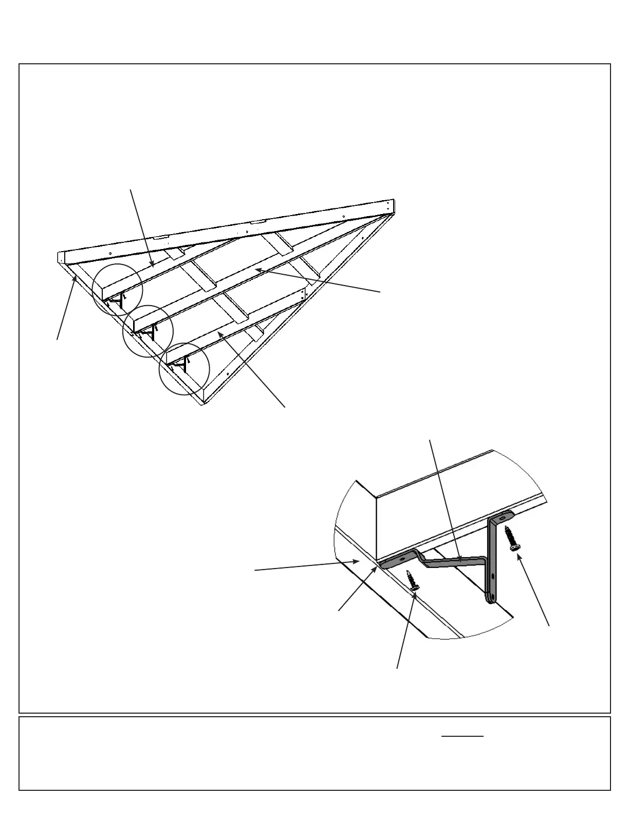 (441) Rafter Short Left and (440) Rafter attach one Roof to Beam Bracket per board with one #8 x 1” Pan Screw