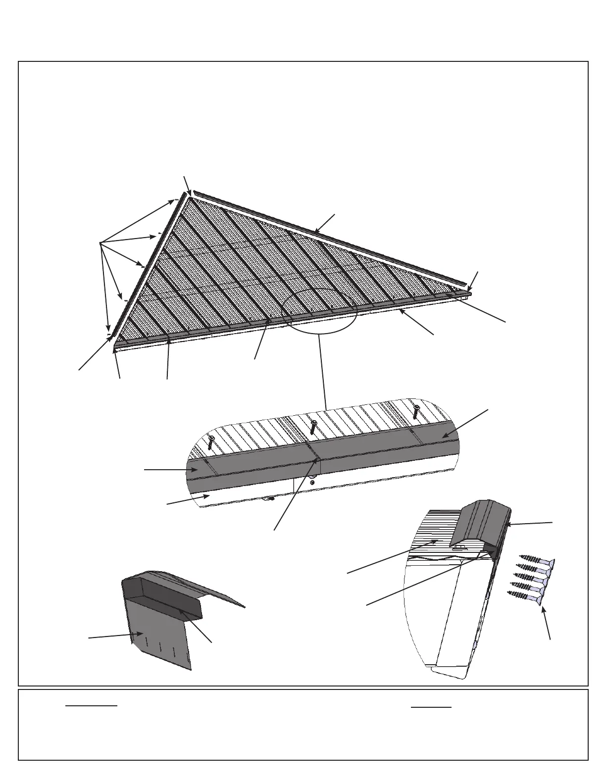 Attach both Roof Edges with 17 #8 x 1” Roong Screws per Small Roof Rafter assembly. (g. 13.1 and 13.2)