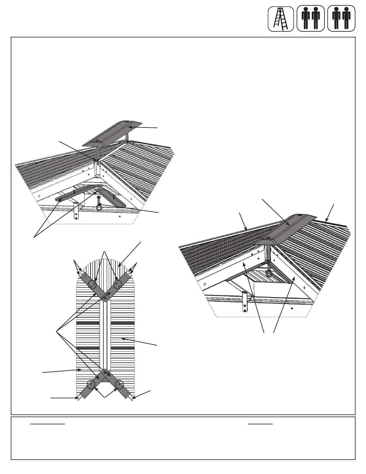 Panels in the slotted holes with four #10 x 1-1/4” Pan Screws. On the second set of Roof Peak Brackets loosely